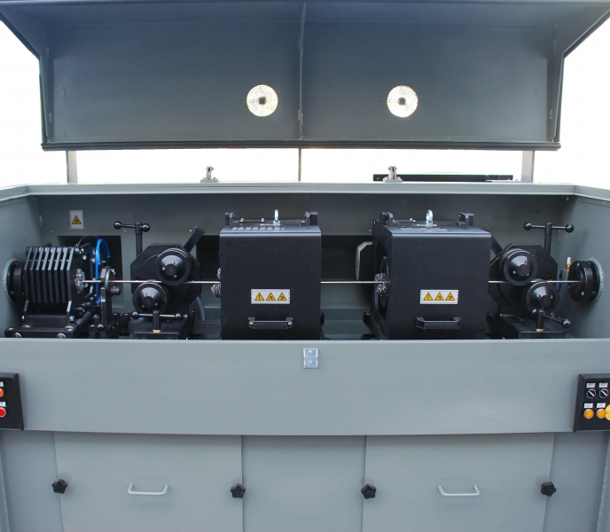 - A seconda dei modelli possono anche seguire una o due presse brevettate che sfruttano la forza centrifuga per serrare la lana di acciaio attorno alla superficie della vergella. Questi dispositivi motorizzati sono controllati da sensori di prossimità e la loro velocità di rotazione, quindi l’effetto abradente, può essere impostato in base alle caratteristiche del processo di trafilatura e della vergella.